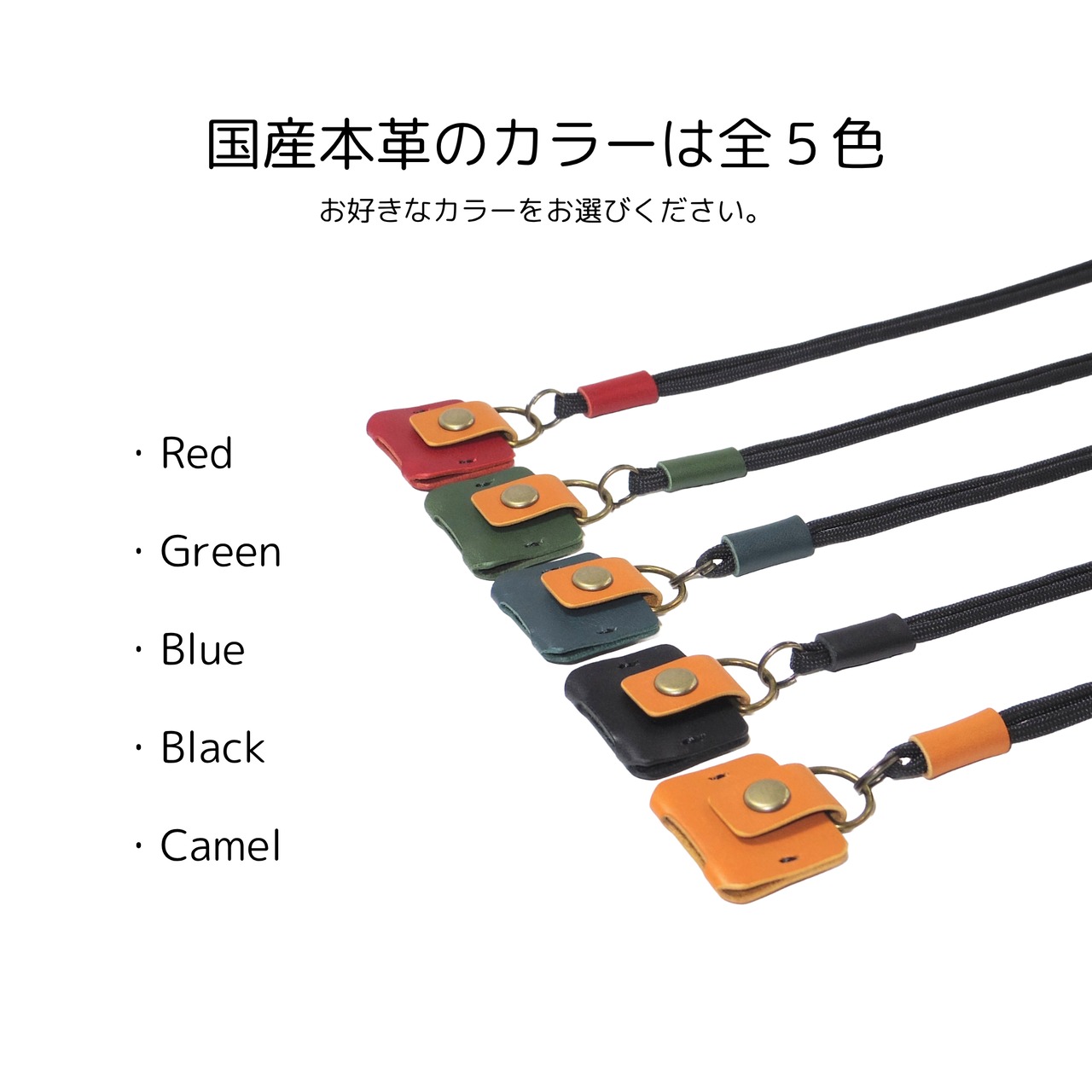 国産本革のカラーは全5色(レッド・グリーン・ブルー・ブラック・キャメル)よりお選びください。
