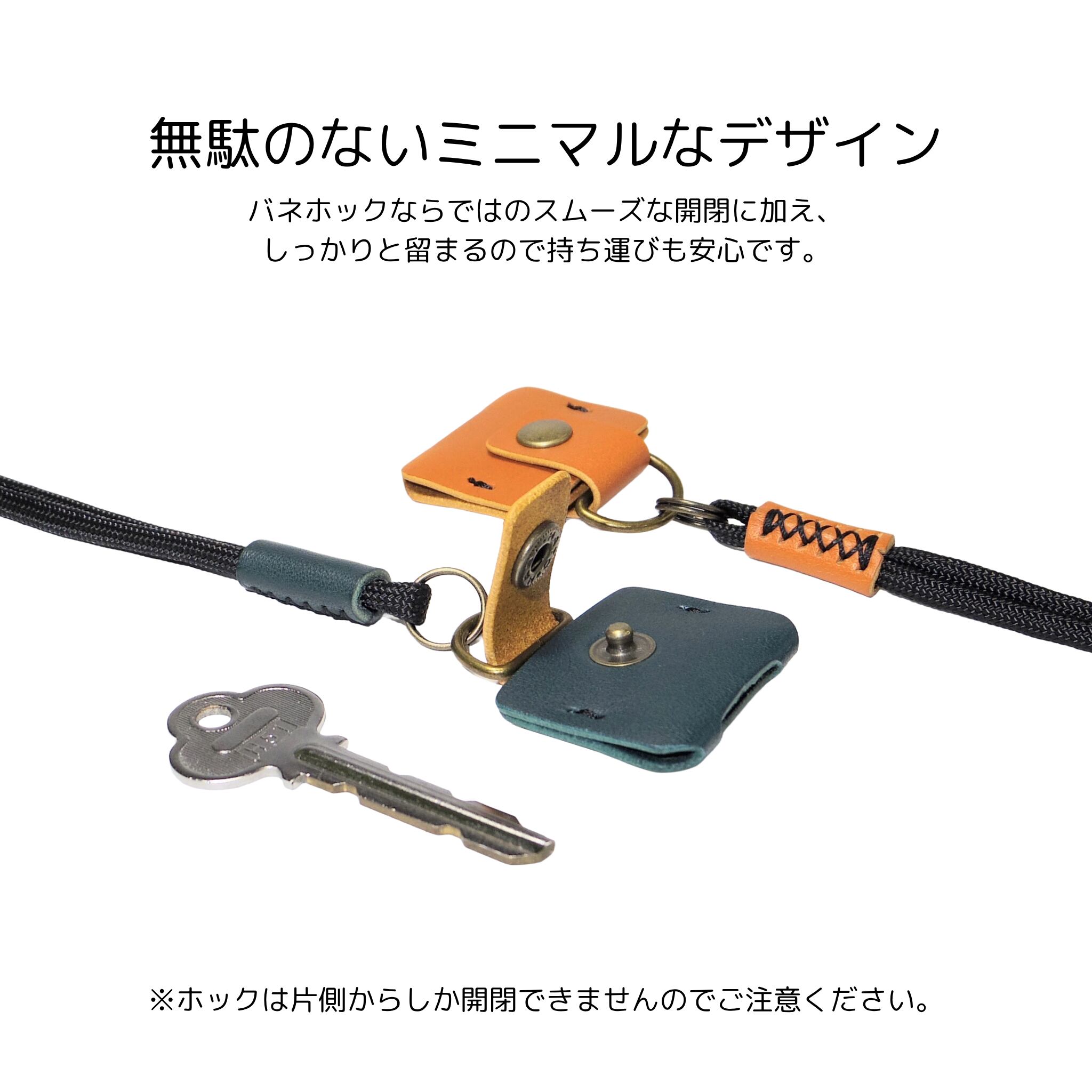 国産本革とパラコードを使用した、鍵1本をスマートに携帯できるミニマルなデザインのネックストラップです。