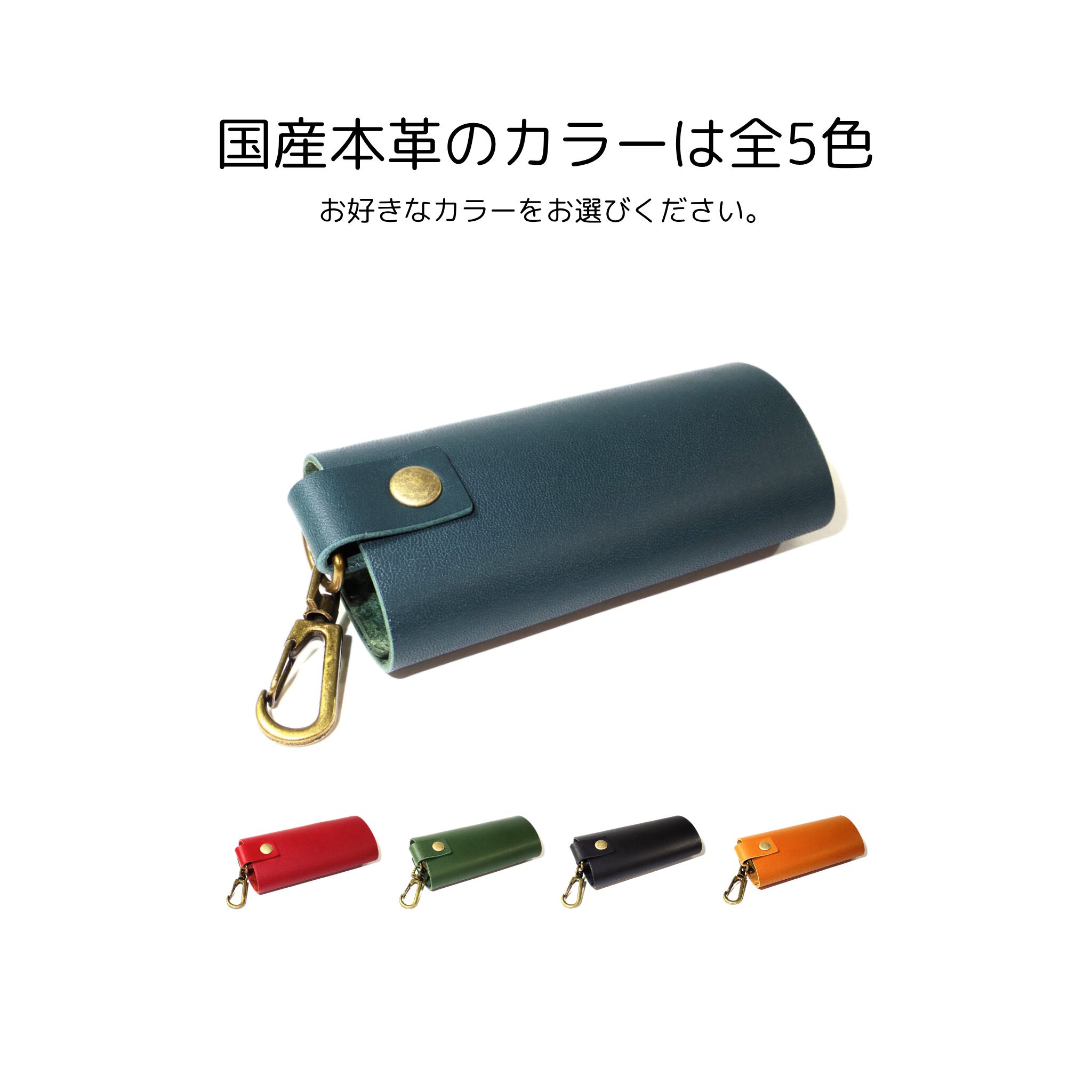 国産本革のカラーは全5色(レッド・グリーン・ブルー・キャメル・ブラック)からお選びください。