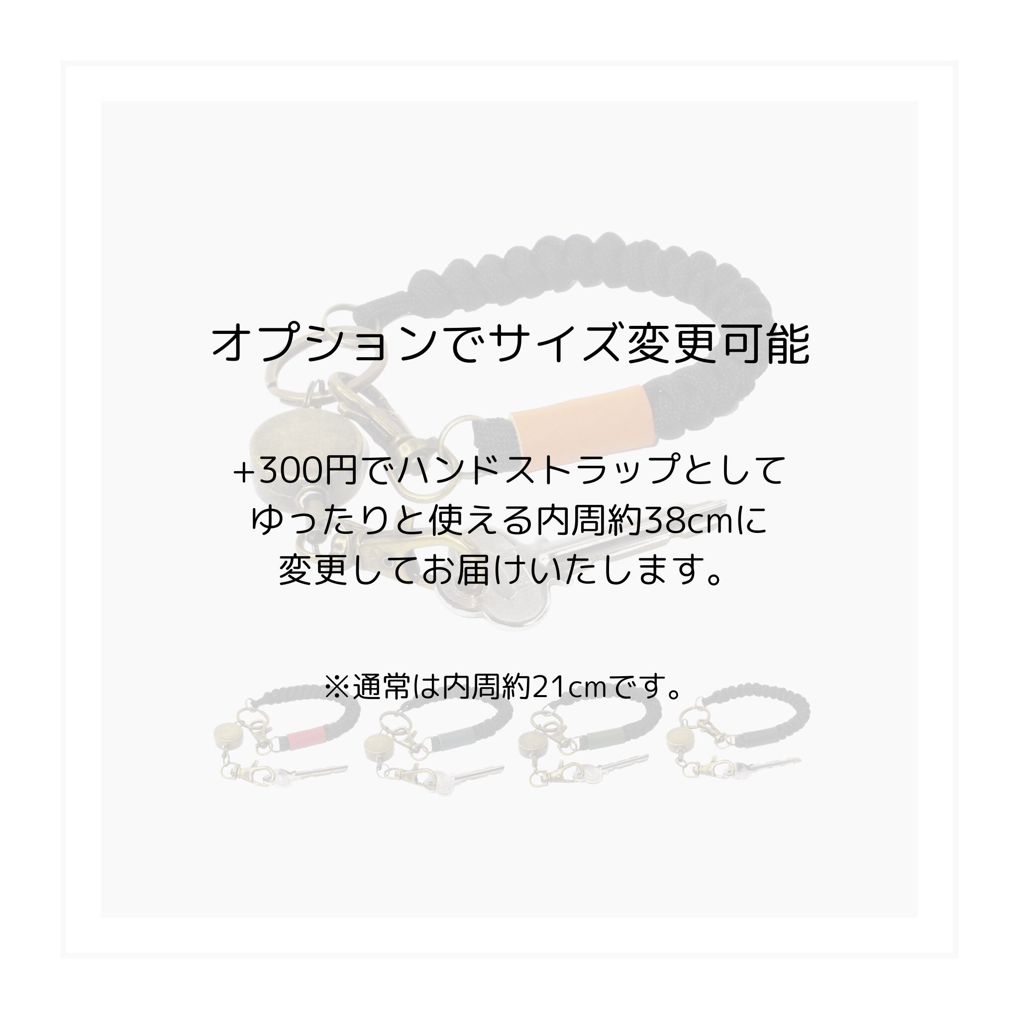 別途オプション(+300円)で、ハンドストラップとしてゆったりと使える内周約38cmに変更可能です。