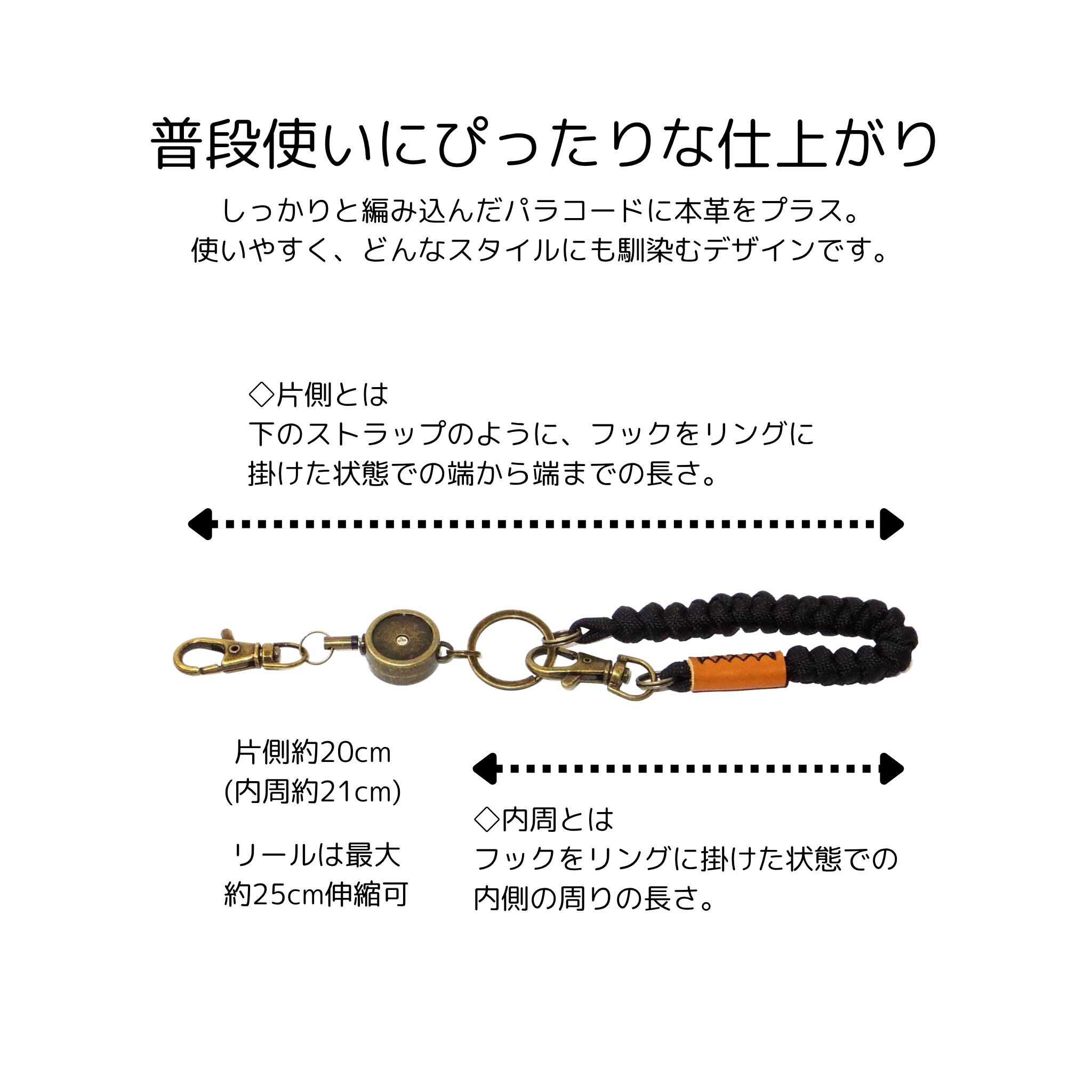 パラコードショートストラップ+ 全5色 国産本革 リール付き ハンドストラップ